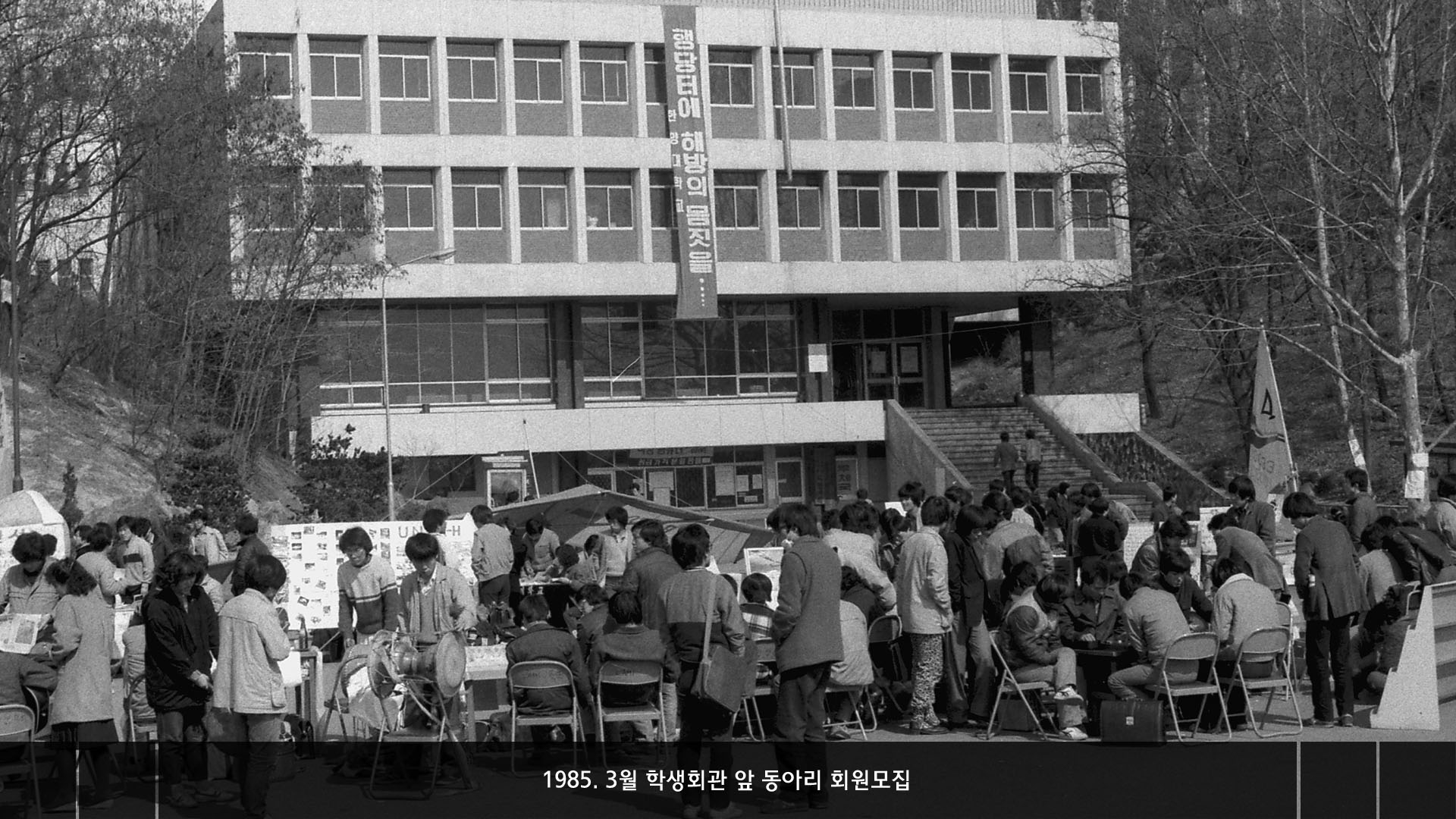 - 1985. Club Recruitment in front of Student Union in March